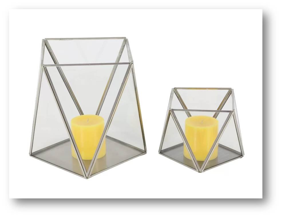 Geometric Candle Holder with Mirror & Handle