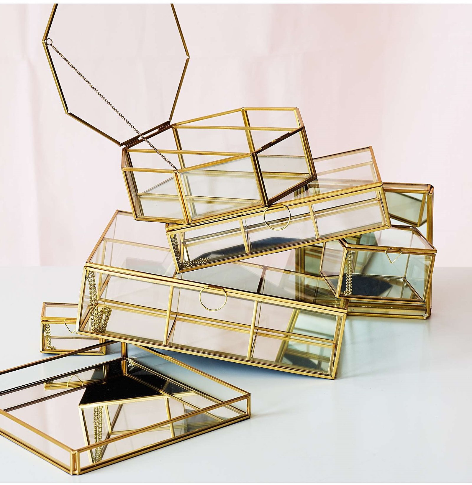 MIRRORED GLASS JEWELRY BOX - HEXAGON