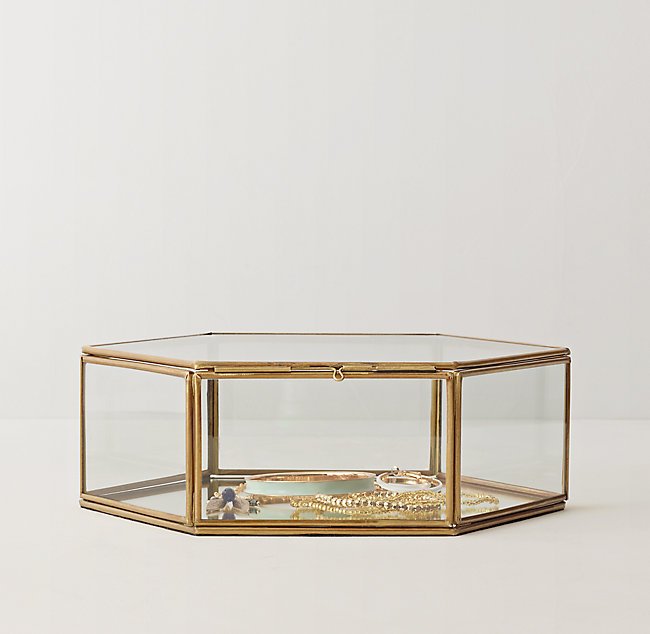 Brown Hexagonal Glass Jewelry Box
